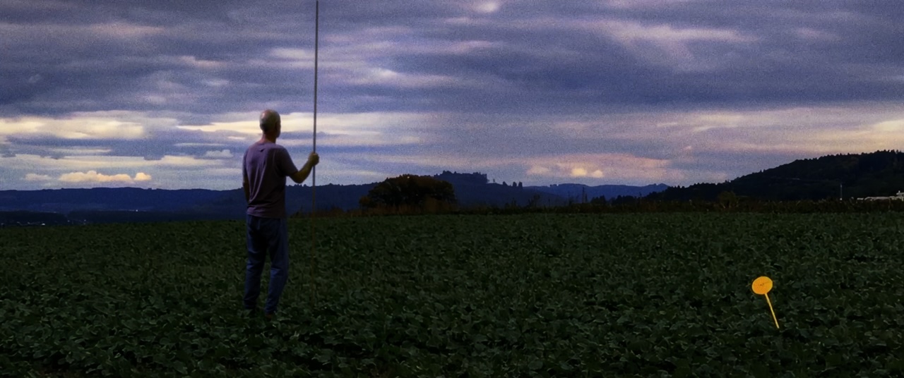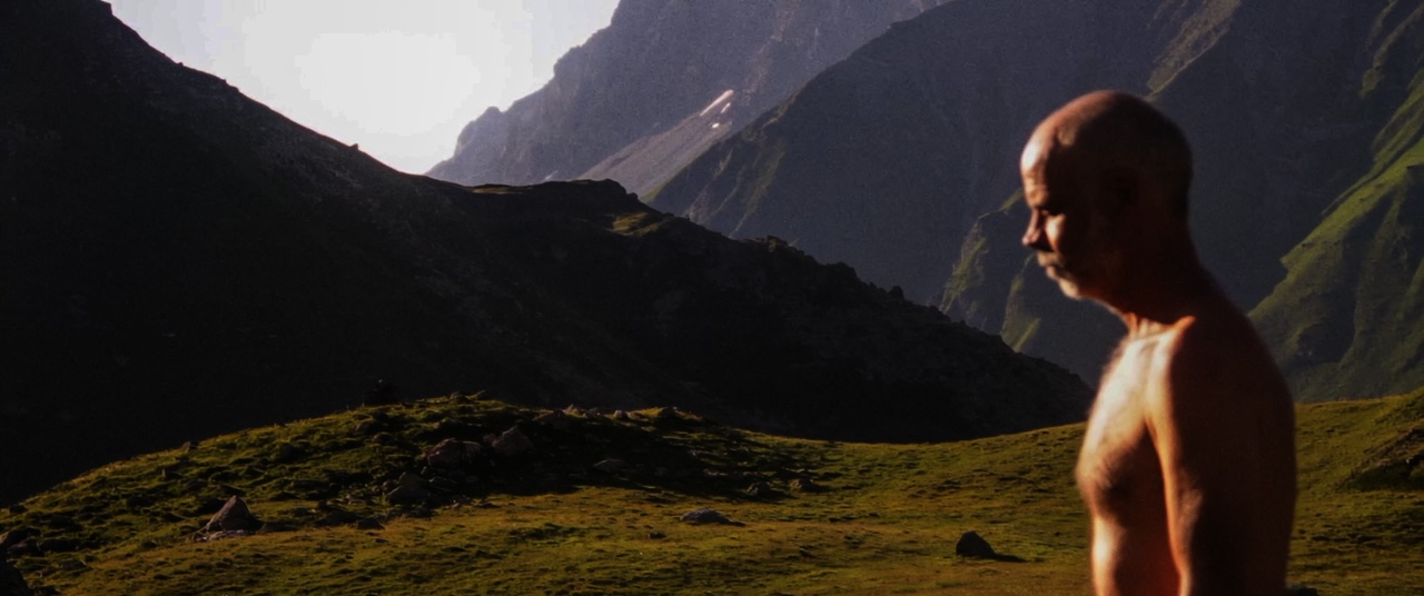 Ein Mann wirft eine Holzleiste in die Welt. Die Leiste verschwindet am Horizont, während sich die Kamera einmal um die eigene Achse dreht. Die Leiste fliegt einmal um die Erde und trifft ihn von hinten in den Schädel. Was wie ein Akt einer gewollten Selbstvernichtung erscheint, ist die metaphorische Auflösung des Egos. Und es ist der Beginn einer metaphysischen Reise.